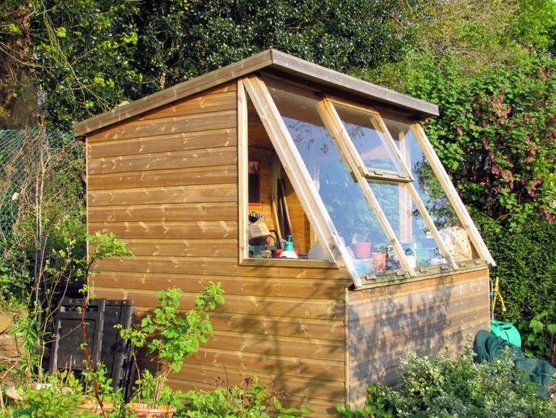 - На сегодняшний день существует много проектов для строительства сарая, но огромной популярностью у дачников пользуются интересные варианты оформления, позволяющие сделать из обычной кладовой нечто оригинальное. В независимости от размеров и дизайна подстройки ее необходимо облагораживать с помощью вьющихся растений или капшо с цветами. Таким образом, небольшой сарай с навесом и дровяником превратится в красивую мини-оранжерею.