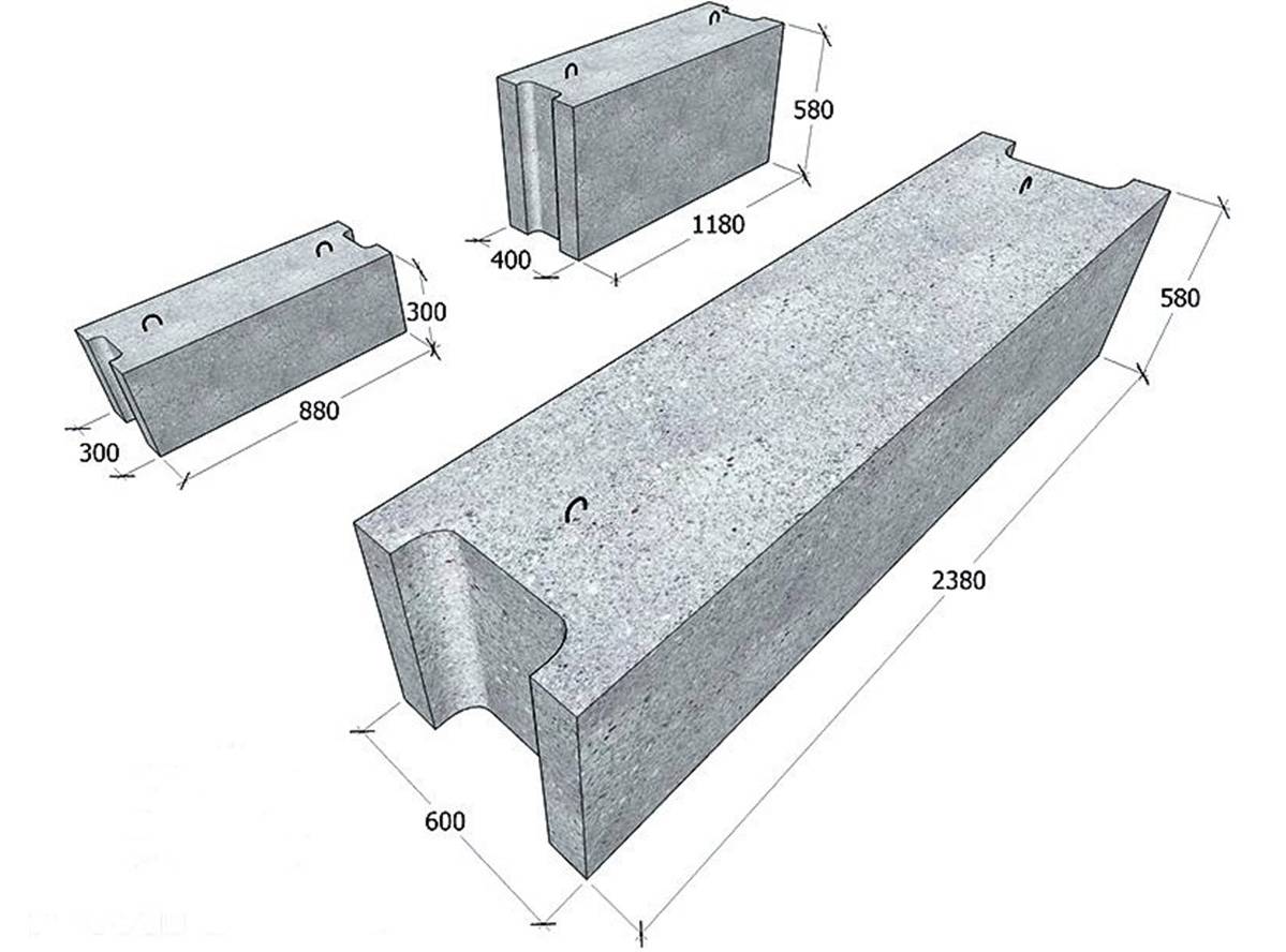 Основу цоколя составляют строительные фундаментные блоки. Это бетонные конструкции, изготовленные по специальной технологии. Материал, используемый в процессе, — прочный армированный бетон. Фундаментные блоки равномерно распределяют нагрузку по всей площади. Перед началом строительных работ нужно рассчитать примерный размер возводимого строения.