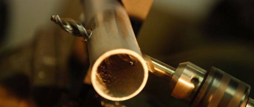 Основной проблемой при высверливании отверстий в круглых трубах, является сложность перпендикулярного сверления. Это означает, что отверстие с которого началось сверление, не соответствует выходному. Что бы решить эту проблему, нужно применять сверлильный станок, или специальные направляющие, которые можно сделать самому или приобрести готовые.