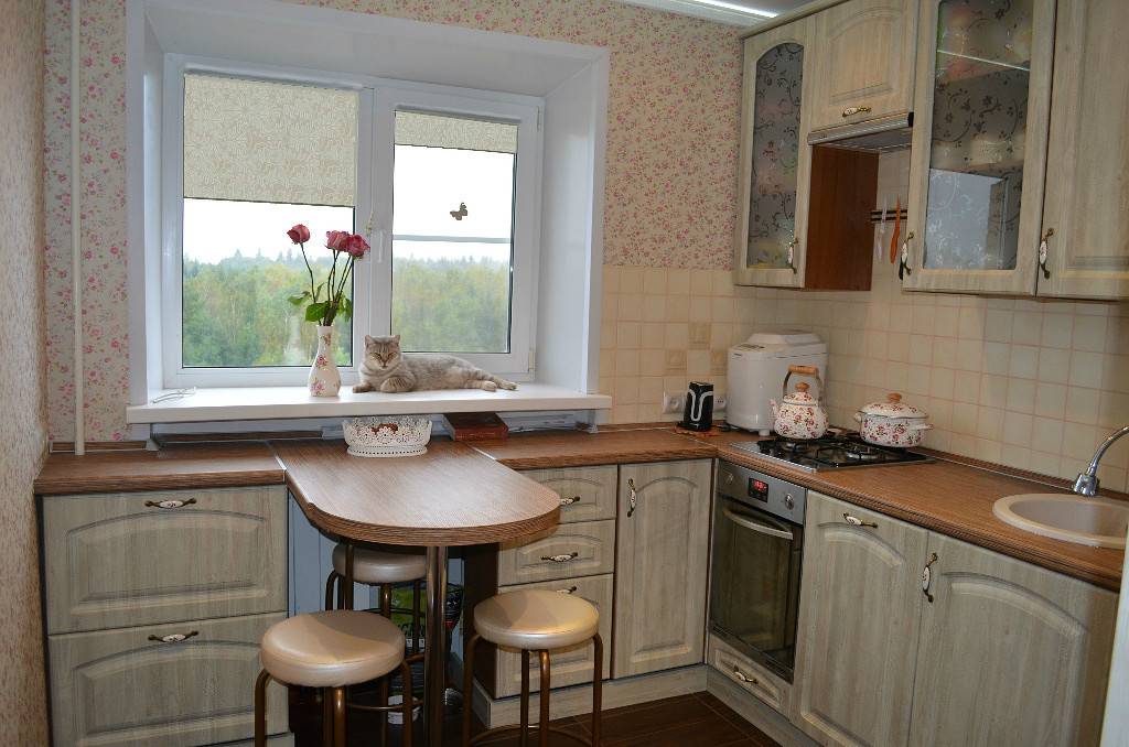 В хрущевках, которые построены из кирпиче, подоконники достаточно больше и по длине, и по ширине, поэтому можно будет использовать их в качестве рабочей поверхности или столешницы для чайника, микроволновой печи или кофемашинки – в таком случае не забудьте вывести в те места розетки. Кроме того, вы можете сделать там стол и поставить несколько стульев (в идеале, если вид из окна будет радовать взор и не придется завтракать, взирая на дым из труб расположенной рядом тепловой электростанции).