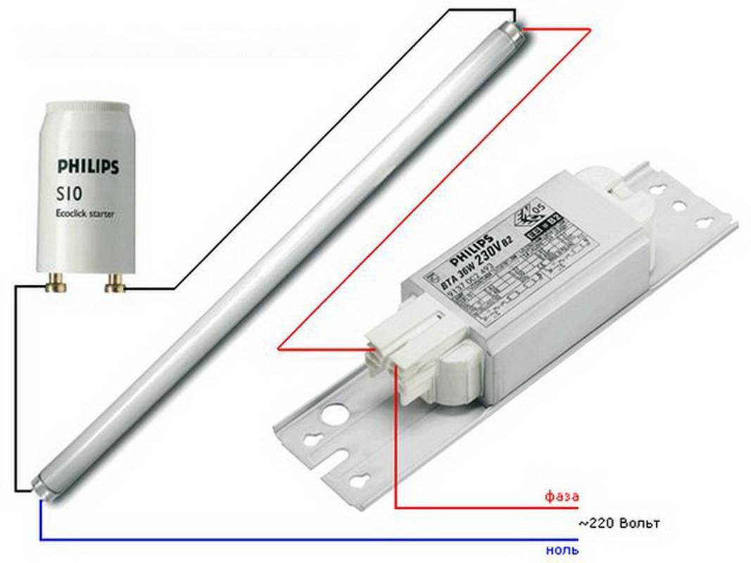 Как подключить люминесцентную лампу