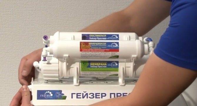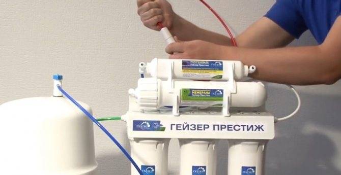 Теперь давайте посмотрим, как самому установить обратный осмос. Ничего сложного в этом нет. Разберем работу на примере системы «Гейзер-Престиж».