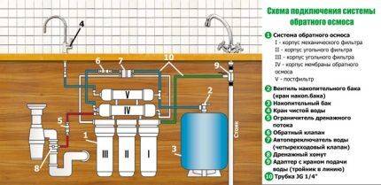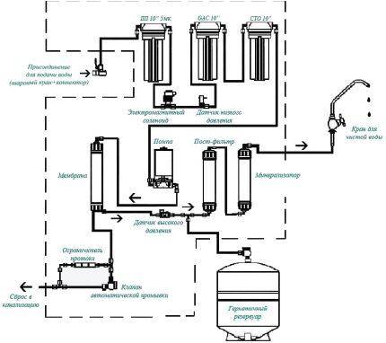 Типовая схема подключения обратного осмоса