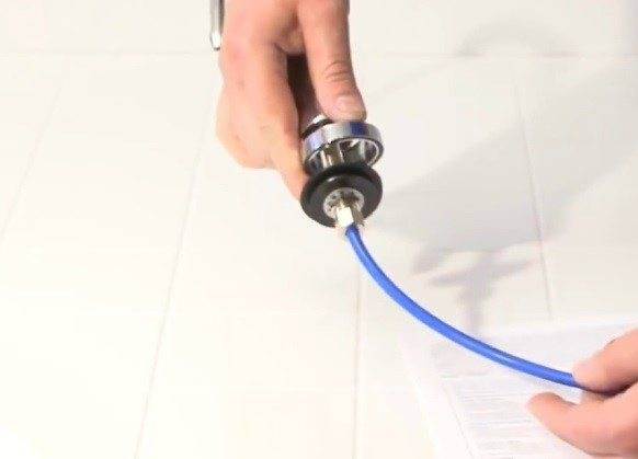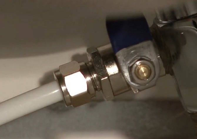 | На трубку, которая у нас идет на кран надевается гайка, потом в нее до упора вставляется пистон. После этого гайка закручивается на кране – соединение получается надежным и не даст течи. |