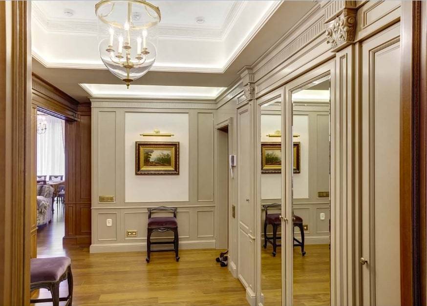 С нишами. Между дверцами может располагаться нише, в которую можно поставить скамейку или комод. Вешалку для шляп и сумок, ключницу и т.д.