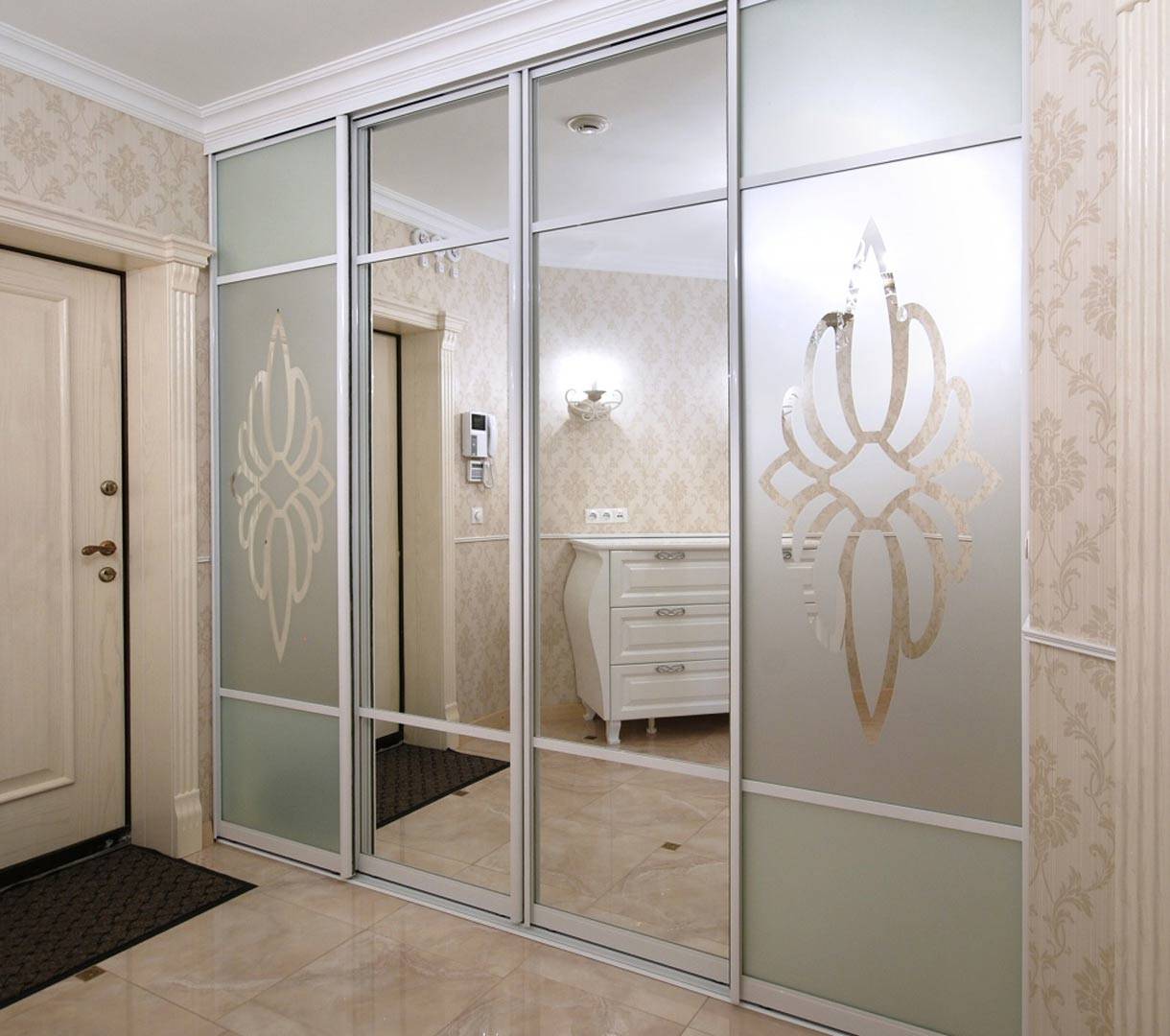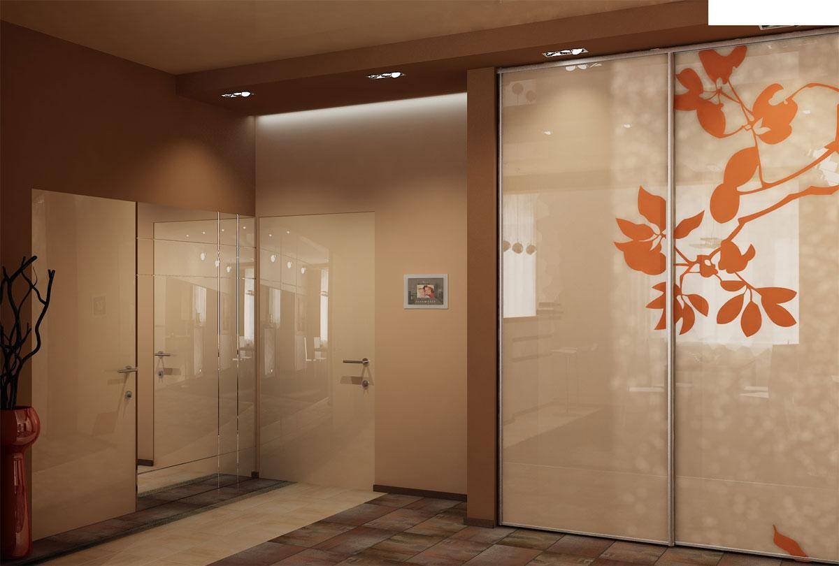 Помимо этого существует множество вариантов внешнего оформления створок в зависимости от стиля интерьера прихожей. Дверцы можно сделать глянцевыми однотонными или нанести на них любое изображение с помощью фотопечати. Чтобы сделать прихожую более просторной и светлой, можно использовать зеркальные дверцы от пола до потолка.