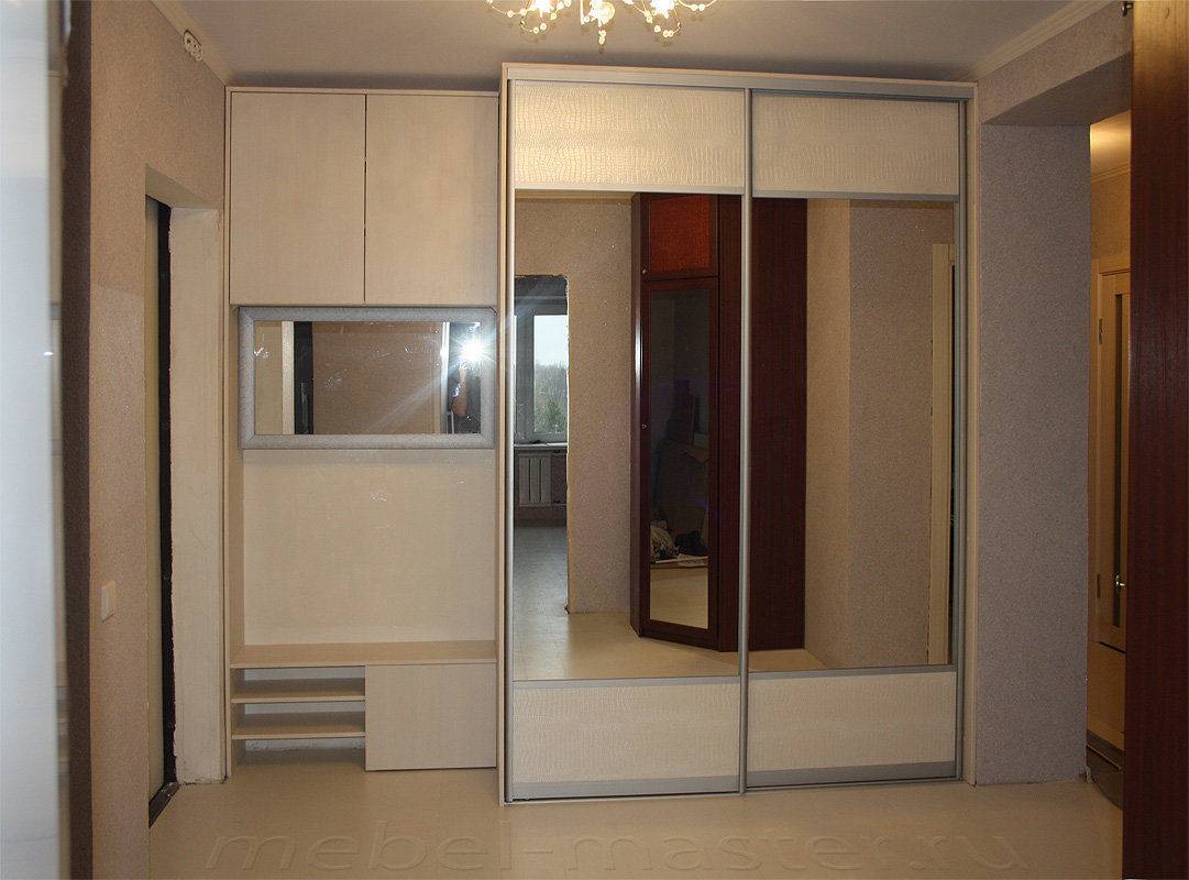 Иногда тип помещения предполагает нестандартное решение для установки шкафа. К примеру, для прихожей тупиковой или узкой формы лучше использовать встроенную конструкцию. Этот вариант экономичнее. Роль боковых и задней стенок в ней играют стены комнаты. Составляющие также закрепляются на них. В таких модулях отсутствует самостоятельный потолок и пол. Для изготовления встроенного шкафа-купе необходимы только двери, направляющие для них, прочная фурнитура, дополнительные конструкции, крепления.