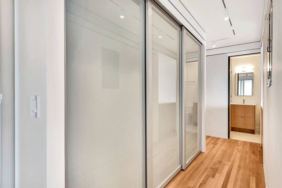 Шкаф-купе с одной боковой стороной. Встречается в ситуациях, когда система хранения размещается в углу помещения. В этом случае стена длиннее шкафа. И хозяева хотят оставить небольшую нишу для скамьи, на которую можно сесть, чтобы переобуться.