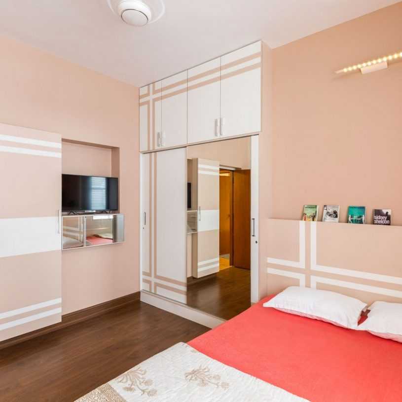 Шкаф-купе небольших размеров, аккуратно впишется в спальню средних размеров.