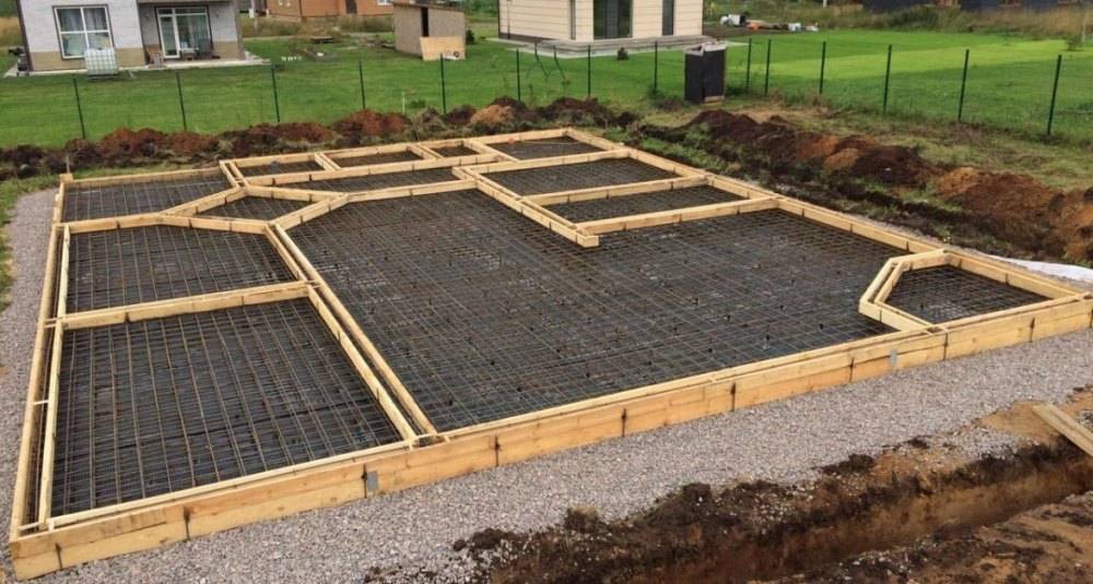 Плитный фундамент — монолит из бетона или железобетона, на котором возводятся стены. Обустраивается следующим образом: