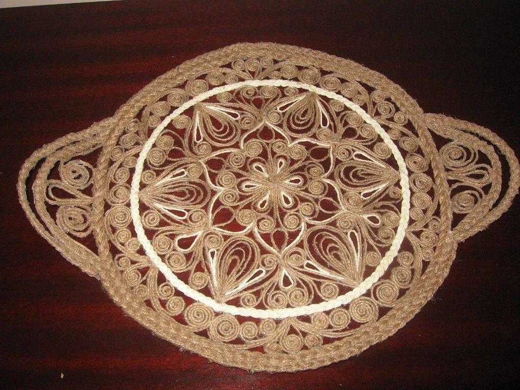 Ниже приведены несколько схем и примеров, как еще можно оформить подставку из джута.