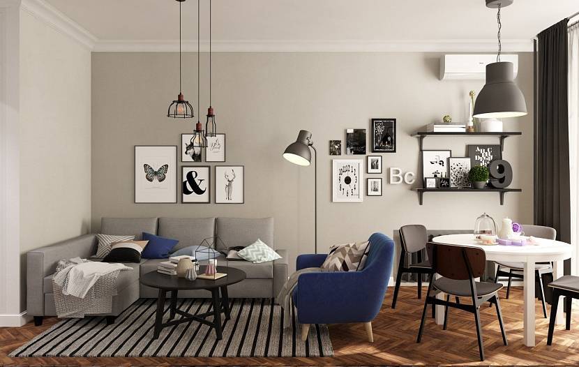 Первое у нас уже имеется – ведь гостиная, совмещенная с кухней, как и любая объединенная площадь – это уже относительно большое пространство.