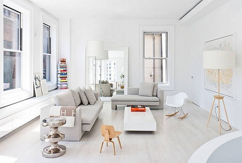 Такой светлый, минималистичный интерьер с лаконичным дизайном подходит и для маленьких квартир и больших студий.