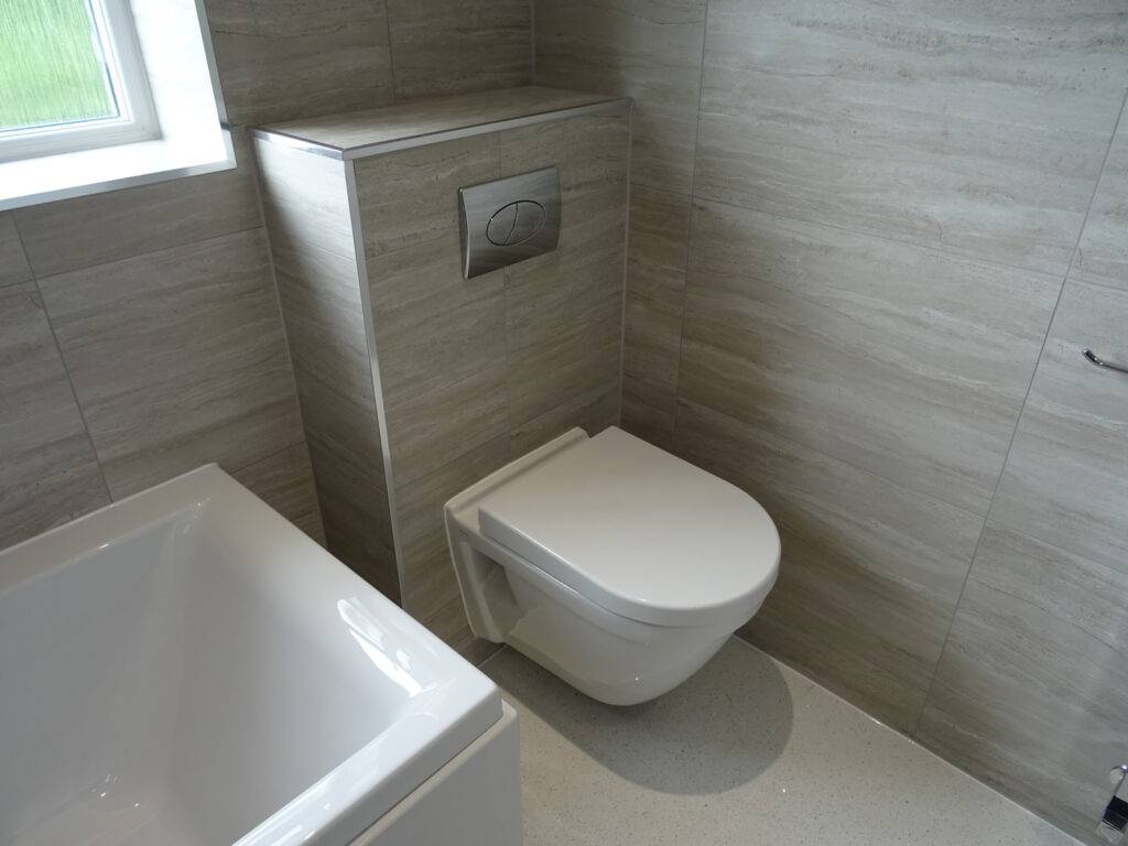 Перед тем как начинать монтаж подвесного унитаза, поверхность следует обработать любым на ваш выбор облицовочным материалом.