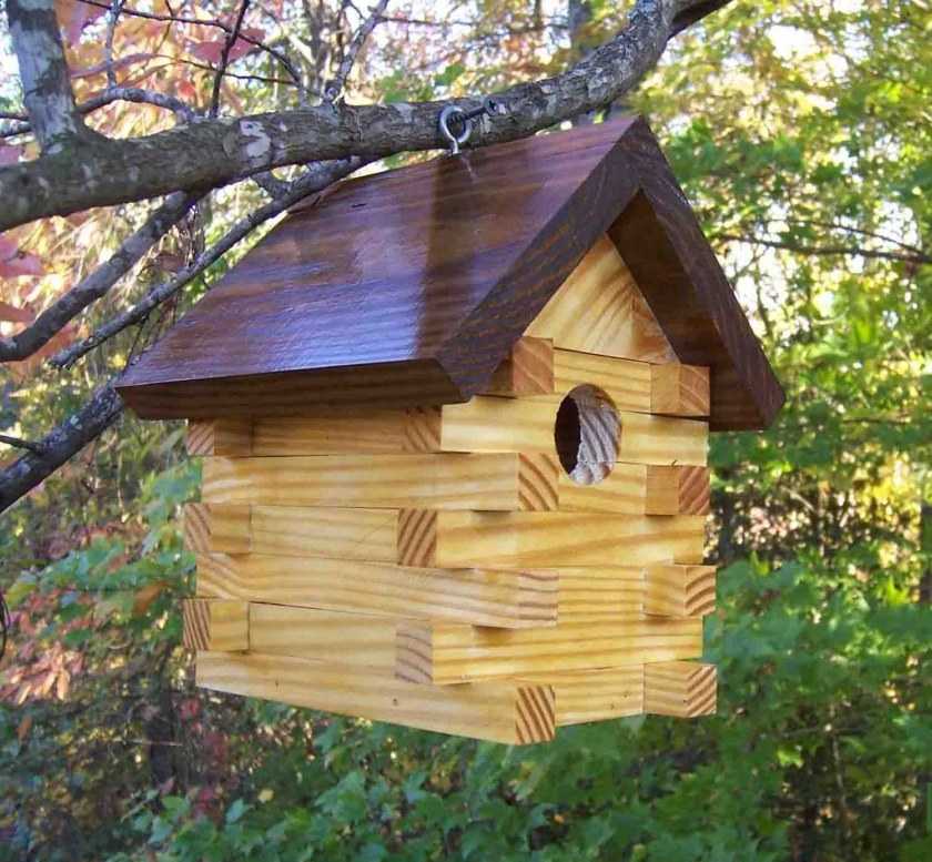 Из деревянного бруса, досок, реек. Иногда в качестве расходного материала выбирают старые деревянные поддоны, которые также являются прекрасной основой для строительных работ. Древесина представляет собой наиболее оптимальный и безопасный материал для изготовления птичьих домиков, ведь липа, осина, дуб не выделяют никаких токсичных или едких смол (в отличие от хвойных пород)