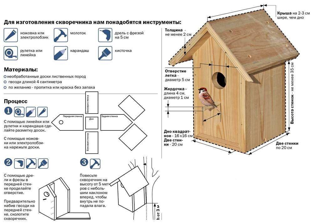 Как правильно изготовить скворечник: размеры, чертеж и описание технологии