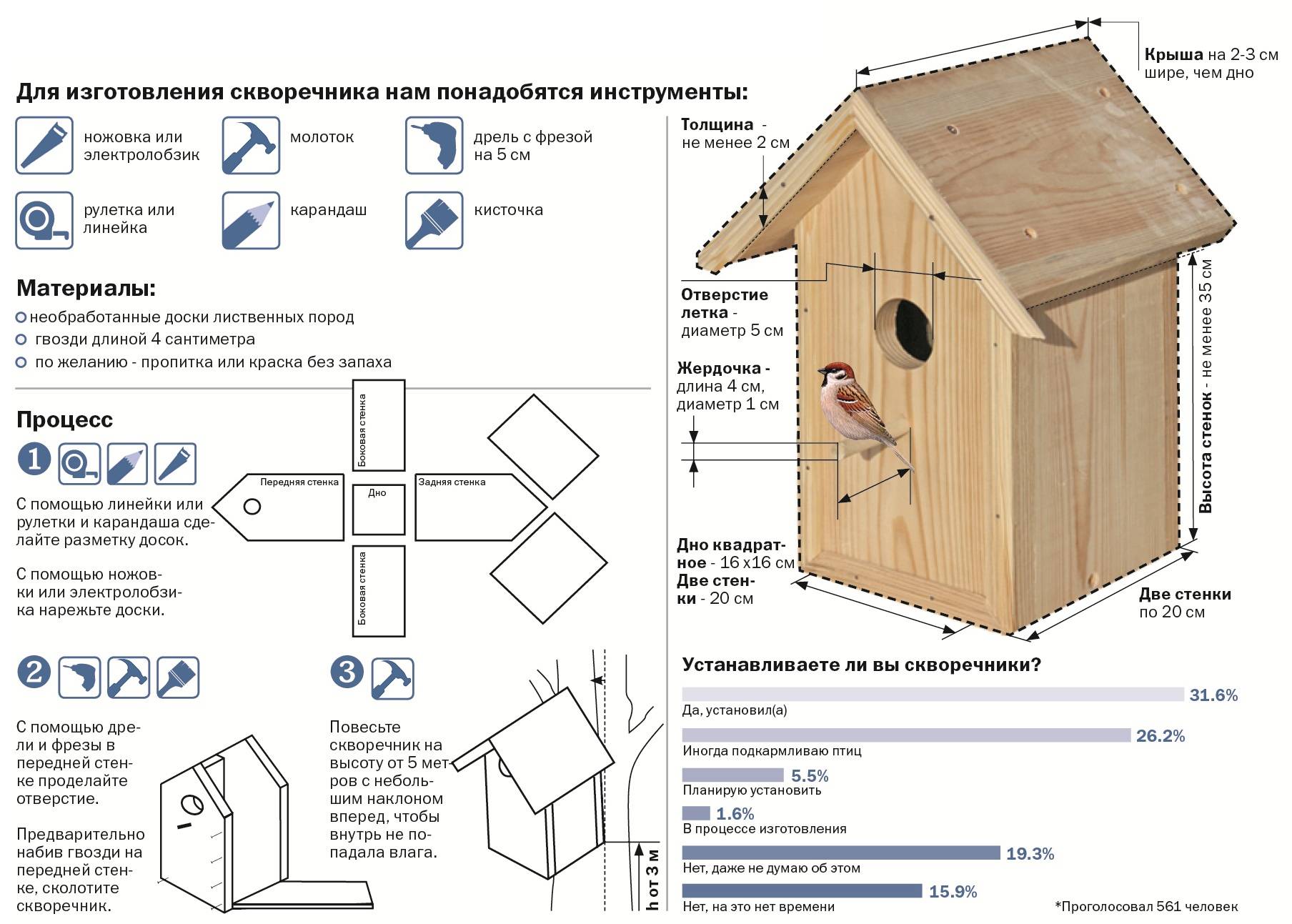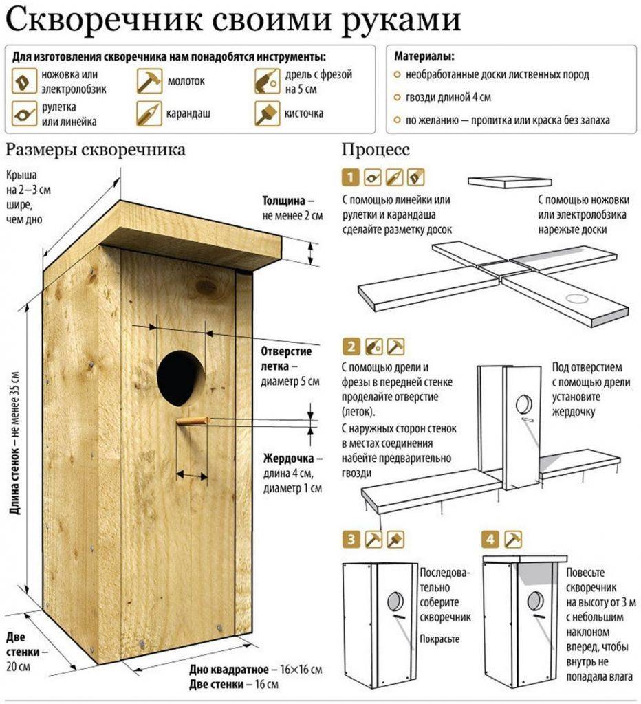 Как изготовить скворечник для скворцов из доски: чертежи, размеры и инструкция