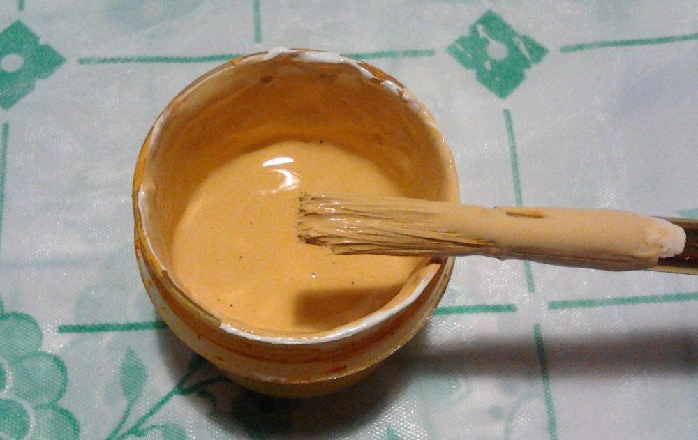 Для получения желаемого тона необходимо смешать указанные краски в отдельной емкости. Коричневая добавляется небольшими порциями в желтую, и после каждого добавления тщательно перемешивается. Такую процедуру повторяют до тех пор, пока не получится нужный результат.
