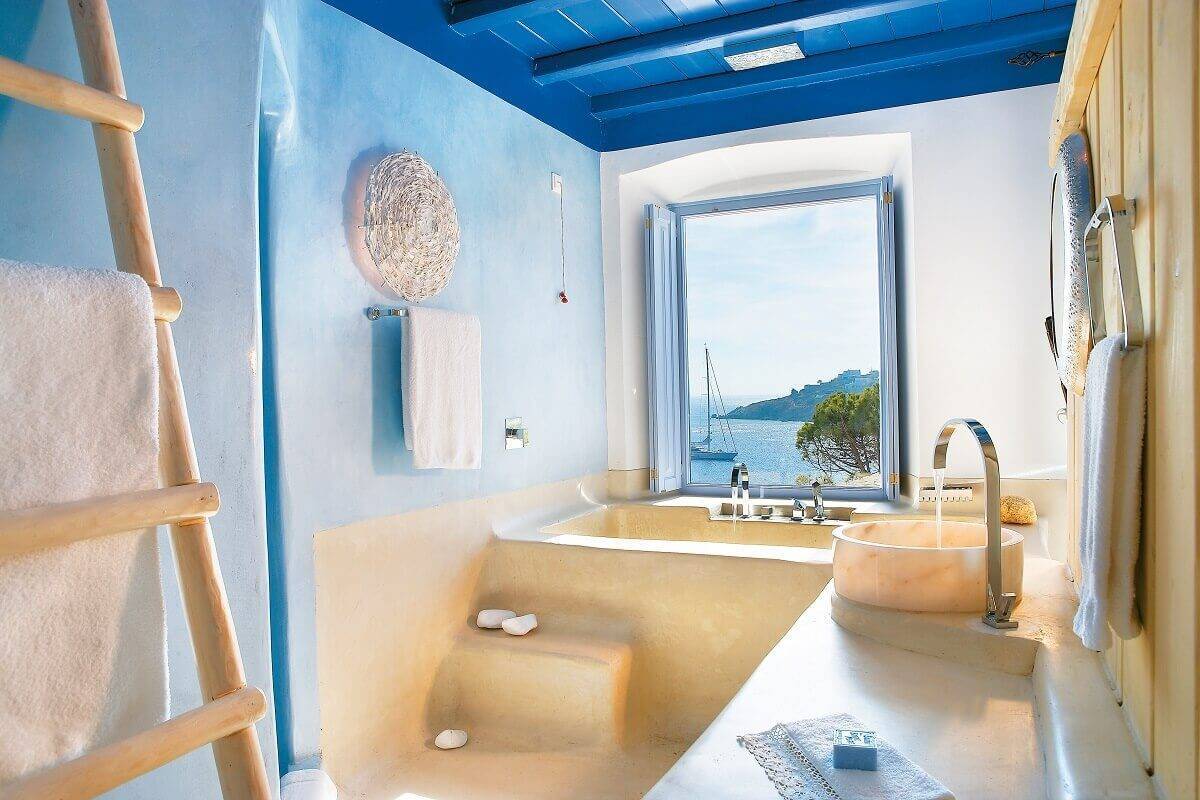 Совет! Потолок можно покрасить в цвет морской волны или небесный, в качестве замены классическому белому, чтобы добавить помещению экстравагантности и оригинальности, а если наклеить поверх люминесцентные звезды, то ночью вы получите настоящий звездный небосвод!