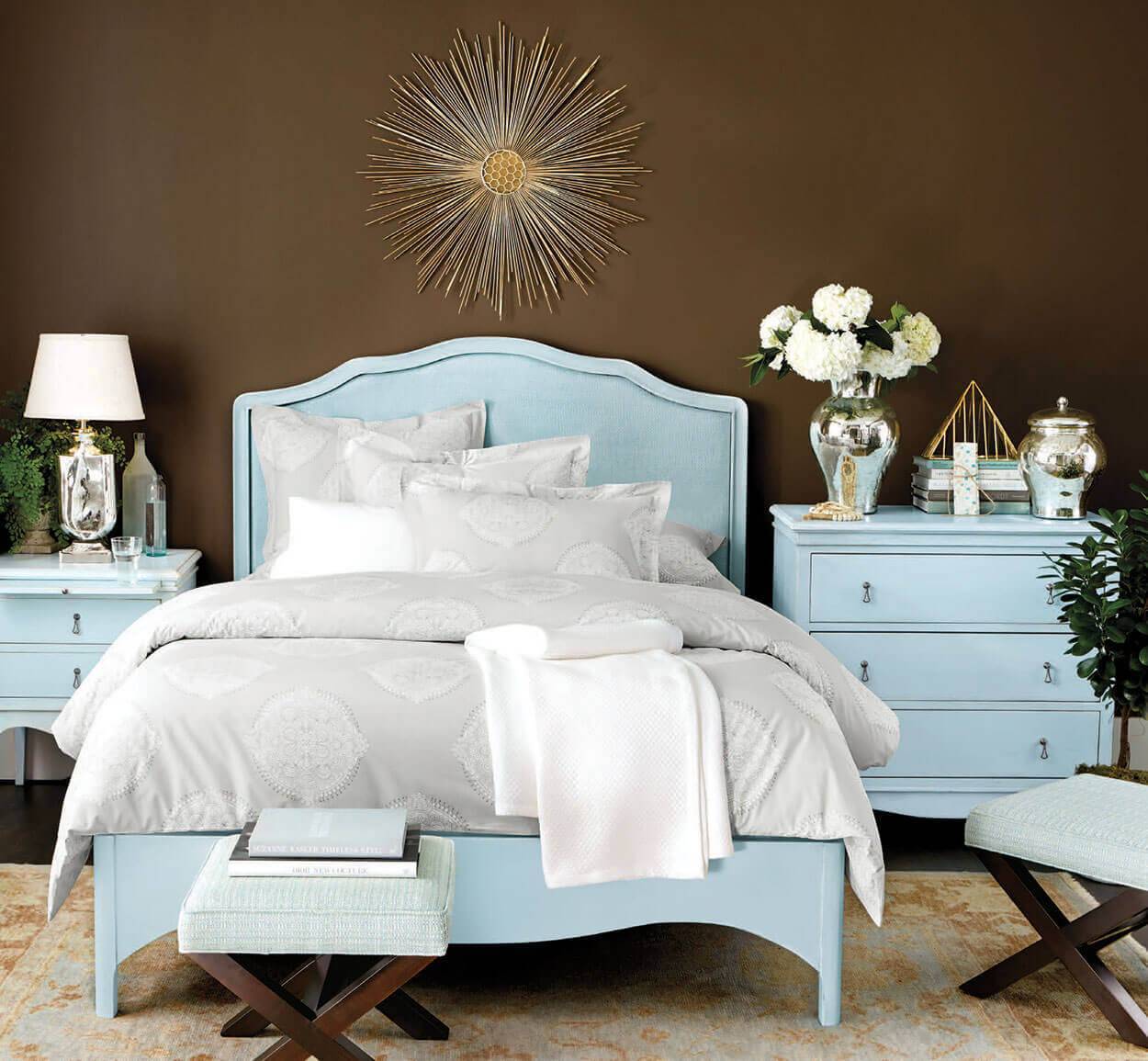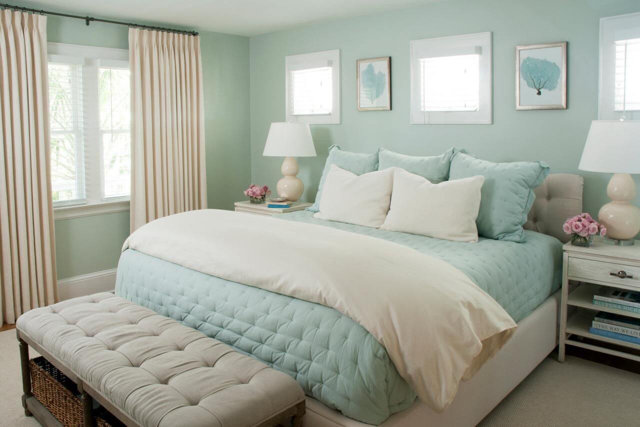 Нежно-голубой и бежевый в спальне – самое приемлемое сочетание для глаз, к тому же эстетично