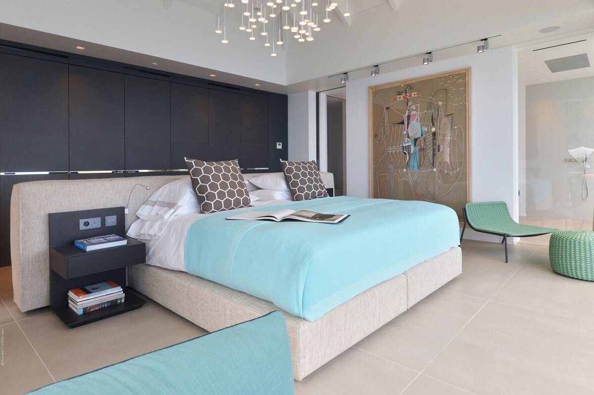 Хотите создать яркий дизайн, тогда используйте сочные оттенки голубого или сочетайте его с красочными насыщенными цветами: например синий цвет в интерьере спальни.