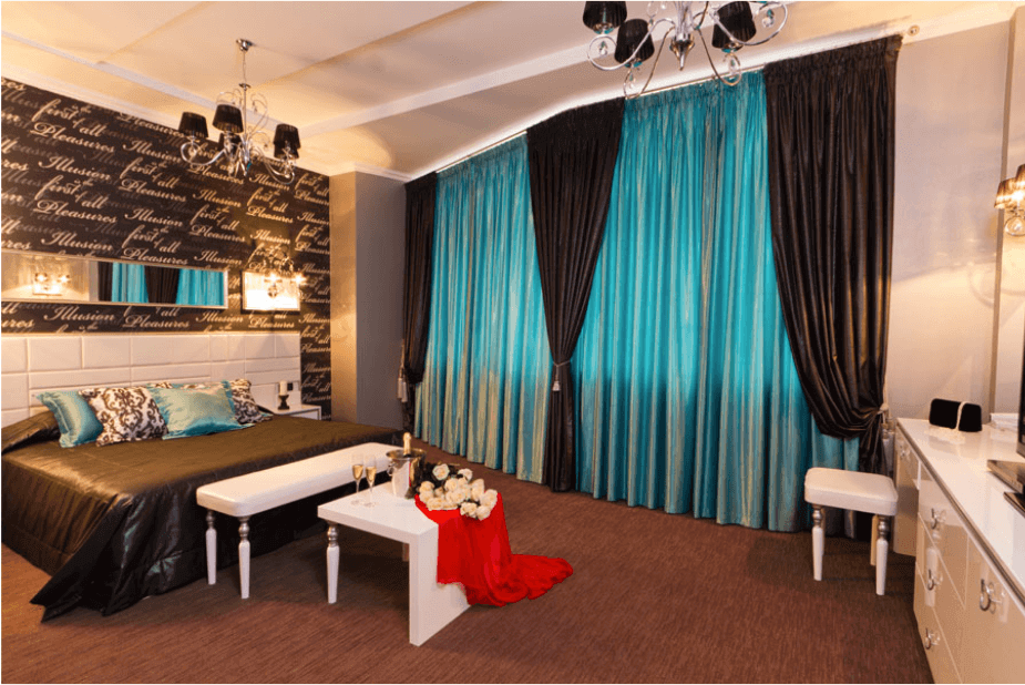 Довольно смелым решением будет использовать голубой вкупе с черным, но при правильном применении эффект может быть поразительным.