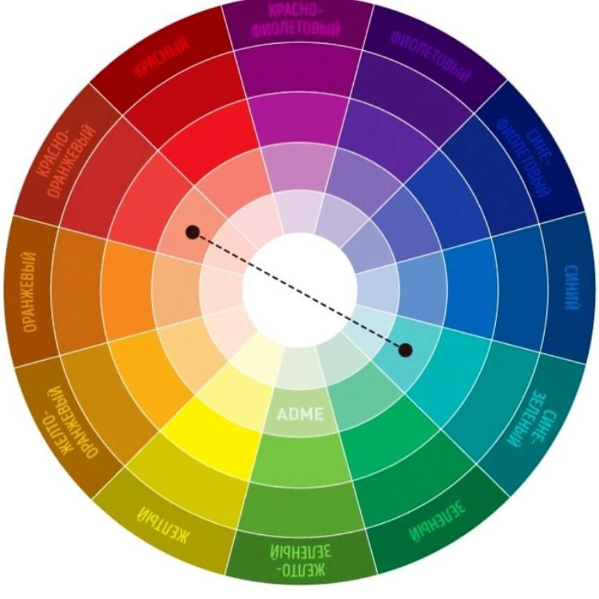 Схема 2. Контрастное сочетание цветов – по этому принципу сочетаются противоположности. Например, зеленый с красным.