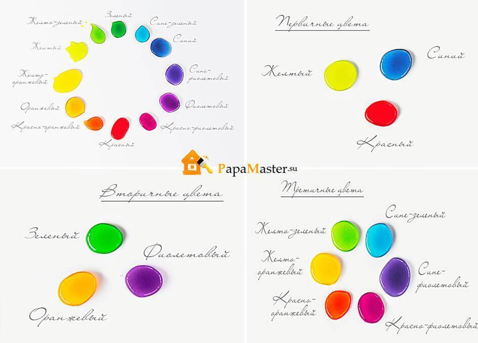 С помощью этой цветовой палитры сочетания цветов в интерьере подбираются по одному из типов: