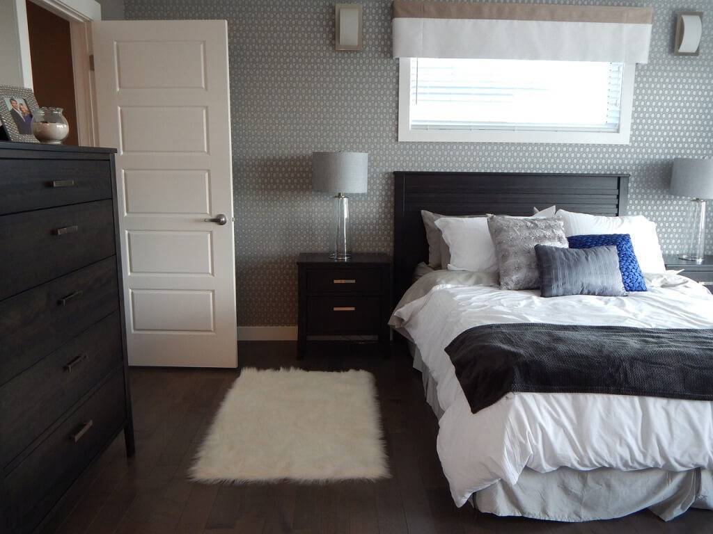 Серо-бежевый цвет в интерьере изысканной спальни.