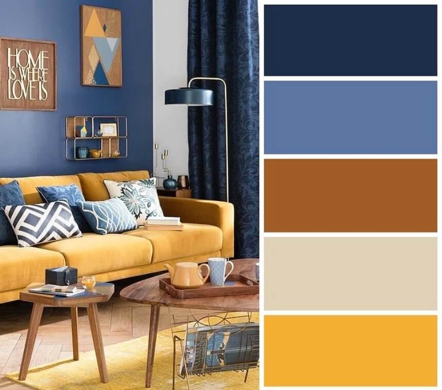 Комбинация для гостиной комнаты – глубокий синий и яркий желтый