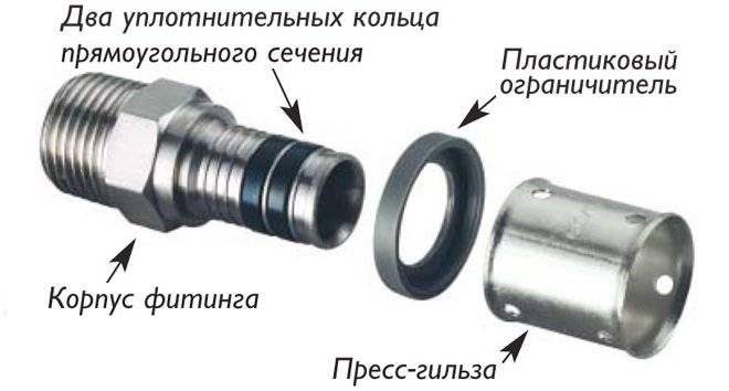 - Неразборные пресс-фитинги считаются самыми лучшими, обеспечивают должный уровень герметичности стыков. Если все узлы собирать с пресс-фитингами, то течи в системе не будет – магистраль выдержит перепады давления и температуры. Установка неразборного фитинга требует применения пресс-машины, оборудование дорогое, но можно взять в аренду. Герметичный контур можно прятать в стены или стяжку пола – с пресс-фитингами утечка не появится очень долгое время.