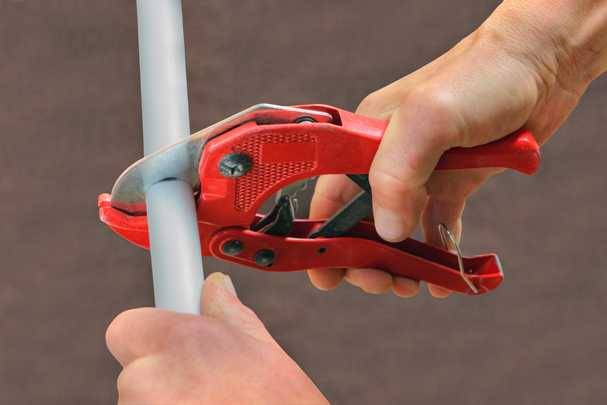 - ножницы-труборезы. По названию ясно, для какой цели они нужны. Особенность этого оборудования заключается в том, что оно позволяет сделать срез трубы ровным и строго перпендикулярным. Для сборки трубопровода этот момент крайне важен. В принципе, некоторые пользуются вместо труборезов плотницким суслом. С помощью этого инструмента тоже можно добиться перпендикулярности среза (при аккуратном подходе), но вот ровности краев вы не получите, придется потом вручную счищать с каждого из них заусенцы,