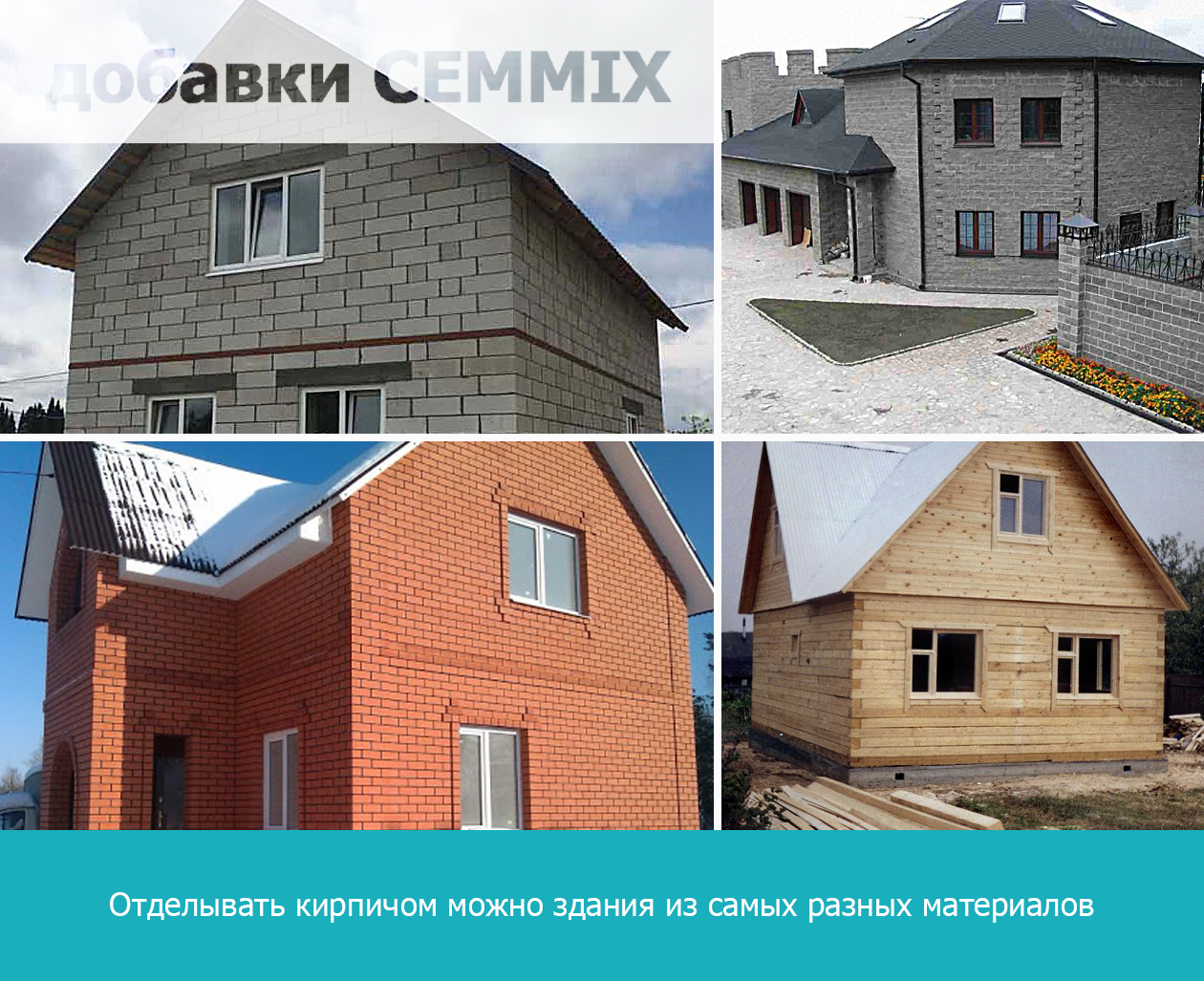 Отделывать кирпичом можно здания из самых разных материалов. Поскольку отделочную стену придется как-то прикреплять к основной, материал здания имеет значение.