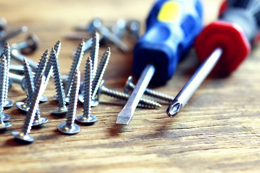 Обязательно наличие дома отвертки. Есть несколько видов отверток. Например, плоская или крестообразная. Как правило, отвертки используют для выворачивания таких деталей, как шурупы, саморезы или болты.