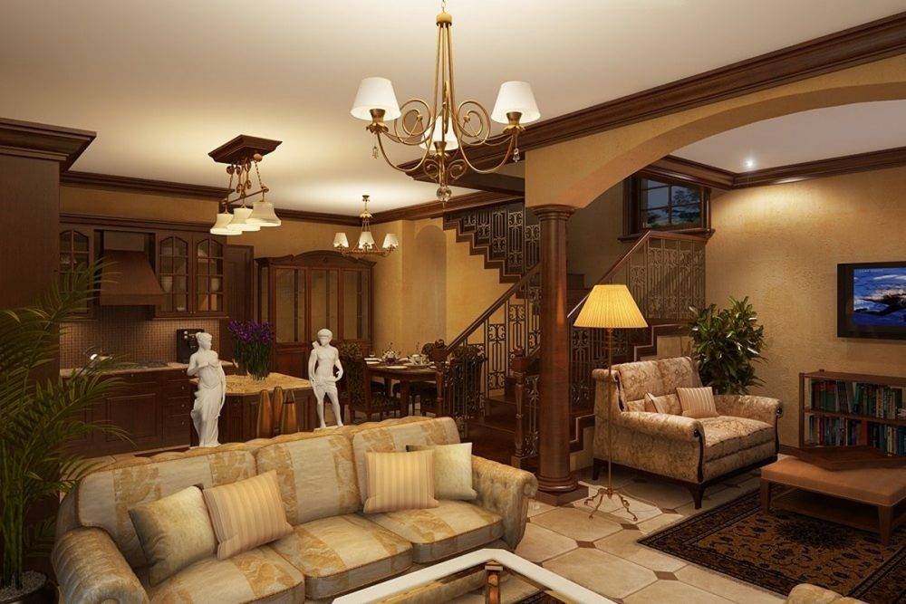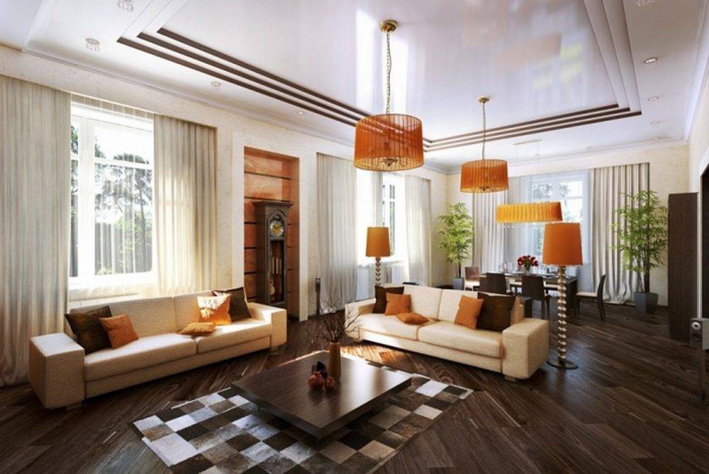 Если зал в вашем доме выполняет функцию гостиной или зоны отдыха, тут можно уже «поиграться» с текстурами, цветом и отделкой.
