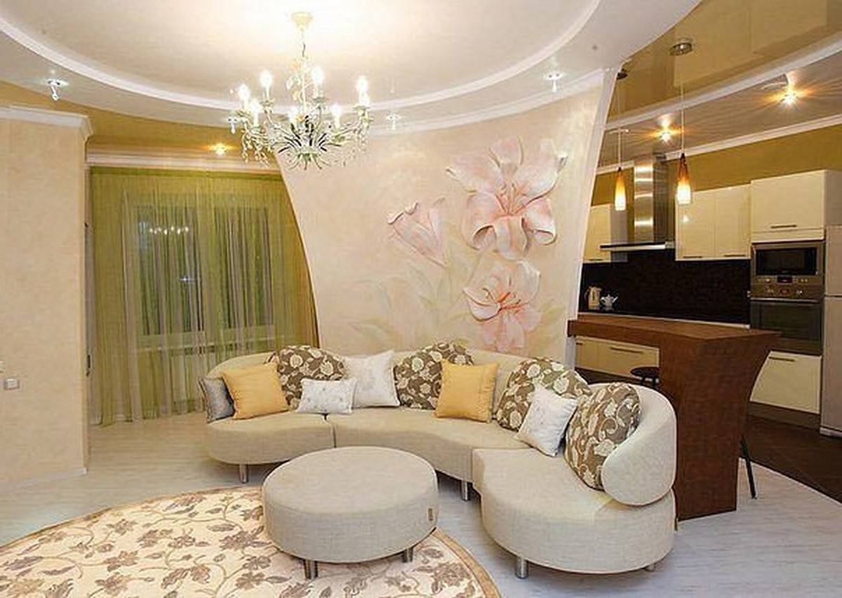 Если спальня и кухня могут «съедать» внимание и переносить его на другие акцентные зоны, то в зале любые произведения художественного искусства будут как нельзя кстати