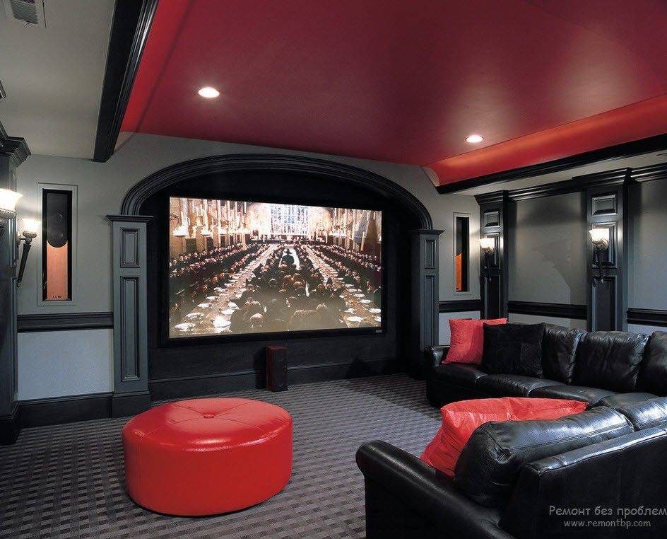Обратите внимание на отделку помещения. Светлые оттенки будут отвлекать от просмотра и не дадут полностью погрузиться в атмосферу фильма, как в кинозале