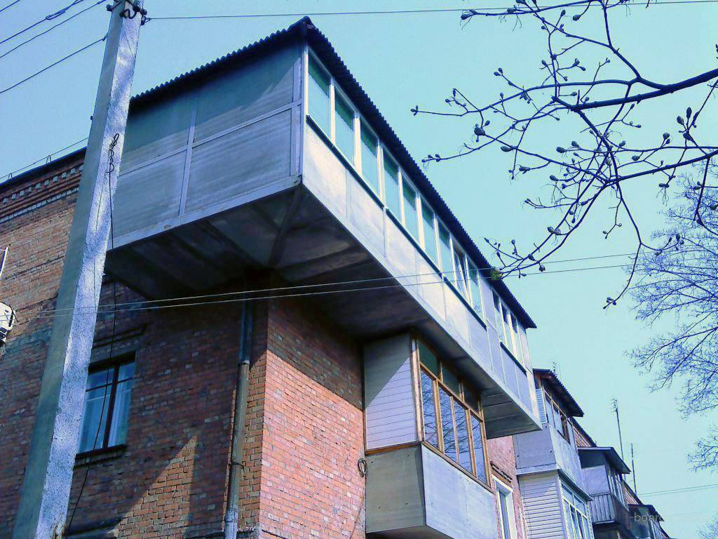 Тут работы ведутся от основания балкона, вся конструкция выноса крепится непосредственно к плите. Такая перестройка более трудоемка, чем предыдущий вид расширения, и материалов на нее уйдет больше. Однако прибавка к площади балкона в результате получится довольно ощутимая – от 20 до 30 см на каждую сторону. А если позволят технические возможности и удастся собрать необходимые документы, то и все 50 см. Но в этом случае, до того как расширить балкон, возможно придется делать дополнительное укрепление плиты при помощи стальных ферм (снизу).