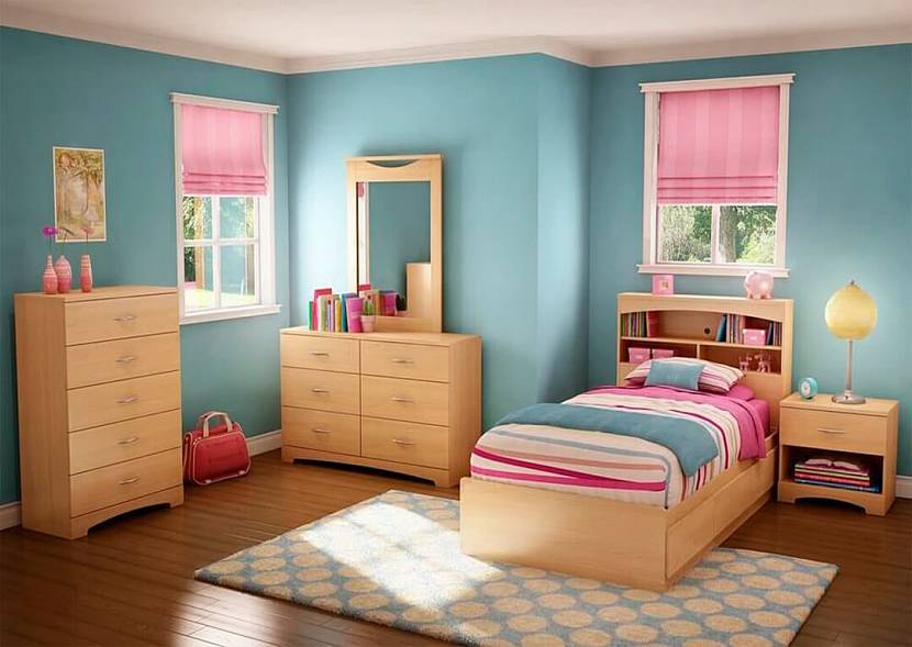 - детская спальня по фэн-шуй должна быть выполнена в более приглушенных тонах: сером, бежевом или белом, на обоях могут быть детские рисунки – машинки, динозаврики, зайчики и т. д.