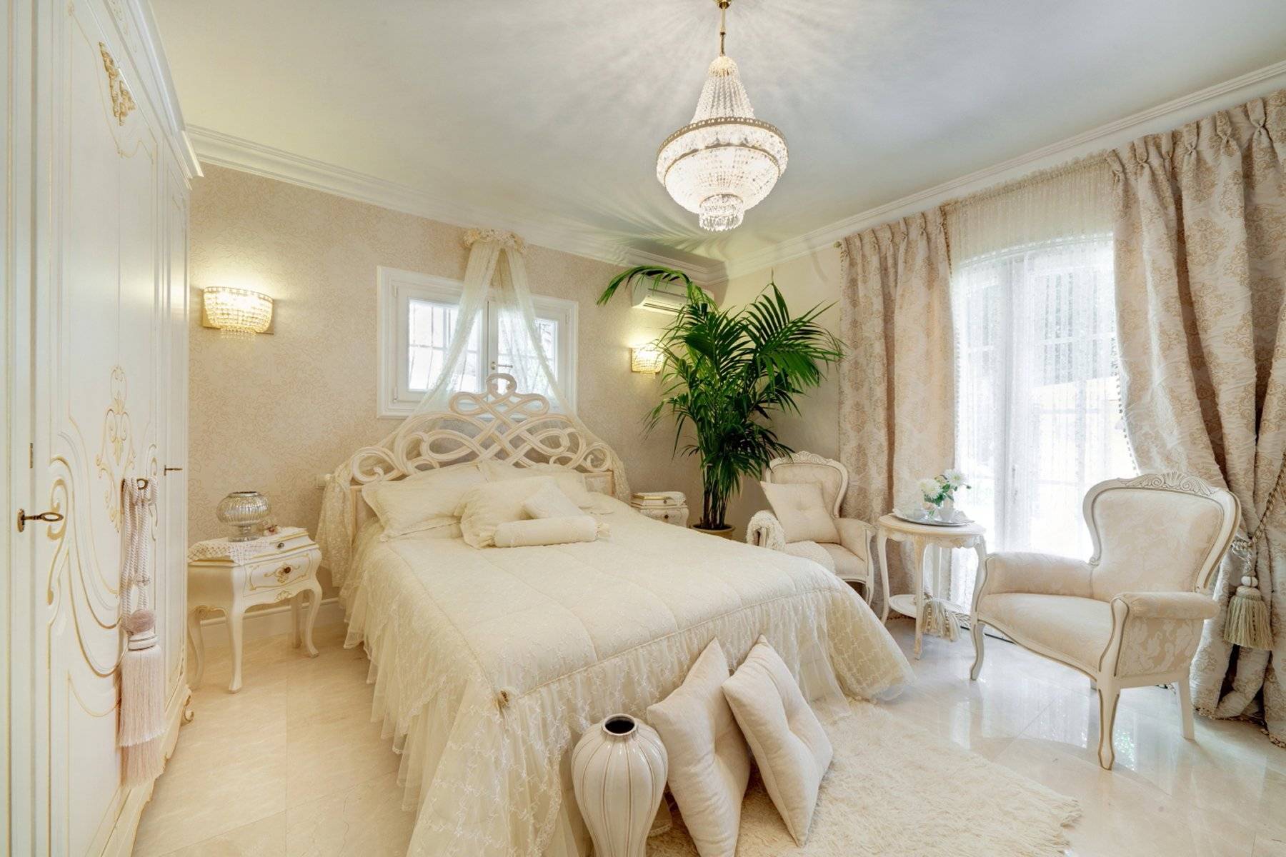Дизайн спальни в светлых тонах строится не только на меблировке, но и на украшениях. Элементы декора рекомендуют подбирать в зависимости от стиля помещения: