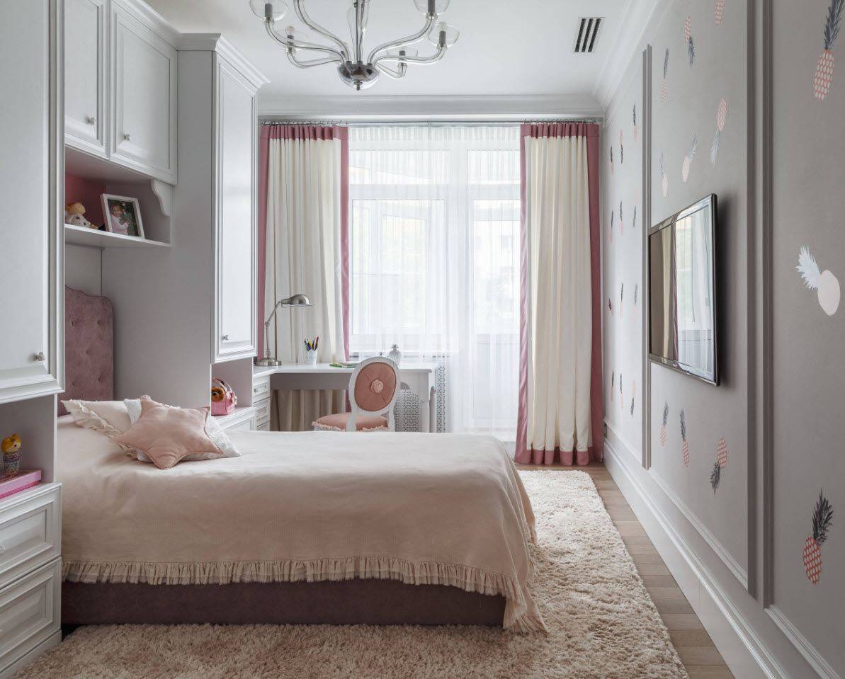 Хорошая идея – выполнить детскую для девочки в лиловых или розовых оттенках. Юная принцесса будет уверена в своей неотразимости, ведь ее комната – такое милое и уютное гнездышко! Подойдут также холодные желтые тона, но при условии, что акценты в помещении будут сделаны на покрывале или шторах более интенсивных цветов.
