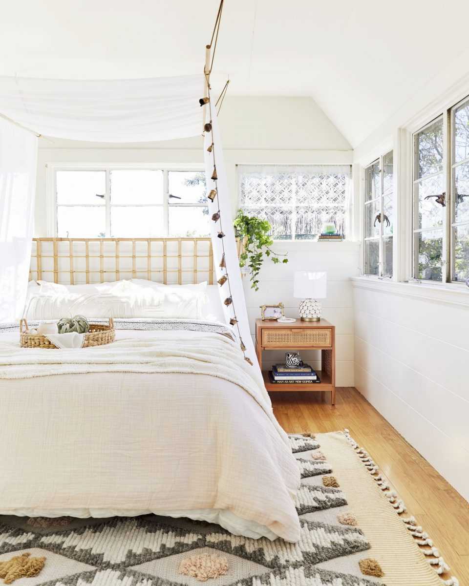 Благодаря нежным аксессуарам вы принесете в спальню мир и гармонию. Именно их присутствие позволит расслабиться и отдохнуть после напряженного рабочего дня. Светлые оттенки подушек или одеял идеально сочетаются с нежными постельными принадлежностями или стенами. Деревянный пол придаст интерьеру теплый климат. Помните также о цветах. Пионы в оттенках светло-розовых или белых роз подойдут отлично.