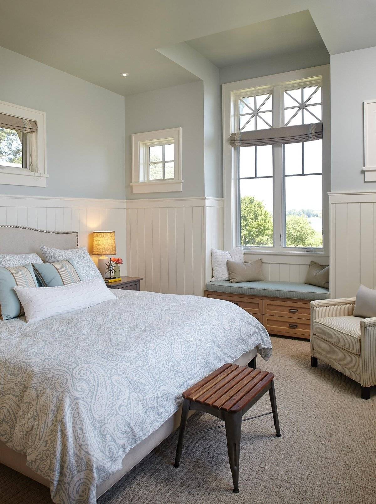 Для тех, кто не уверен в своей любви к зеленой палитре, специалисты рекомендуют подумать над серо-мятной спальней. Эти два цвета отлично гармонируют и не мешают друг другу красиво выражаться. Тем более с такой простой палитрой ремонт под силу даже новичку в этой сфере. Вооружитесь карандашом и блокнотом, чтобы записывать понравившиеся идеи.