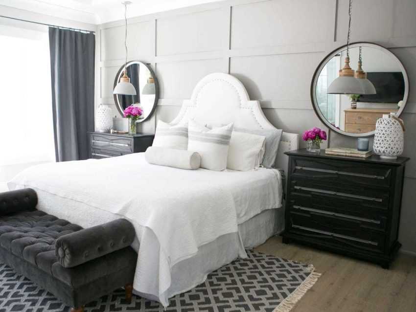 Мрачность черных и серых оттенков не делает эти расцветки неуместными в интерьере спальни. Они добавят в помещение драматизм и ощущение уюта