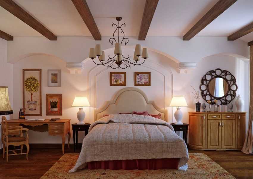 Загружать спальню массивными конструкциями нельзя, а вот разбавлять любопытными деталями можно и даже нужно. При оформлении комнаты не забудьте добавить яркие акценты: пестрые подушки, живые растения, ковры или шкуры животных, керамические мозаики и панно.