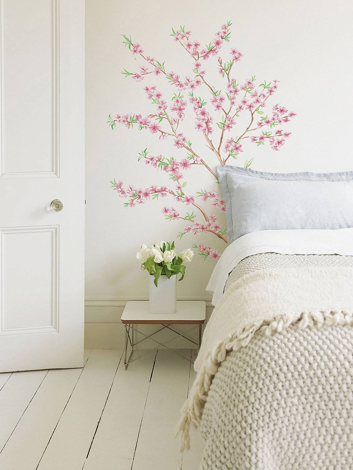спальне в пастельных тонах крайне оригинально смотрятся разнообразные рисунки на стенах, занавесках и предметах мебели. Здесь главное не переусердствовать. Например, если цветочные мотивы нанесены на обои, лучше, если ими оклеят только одну стену.