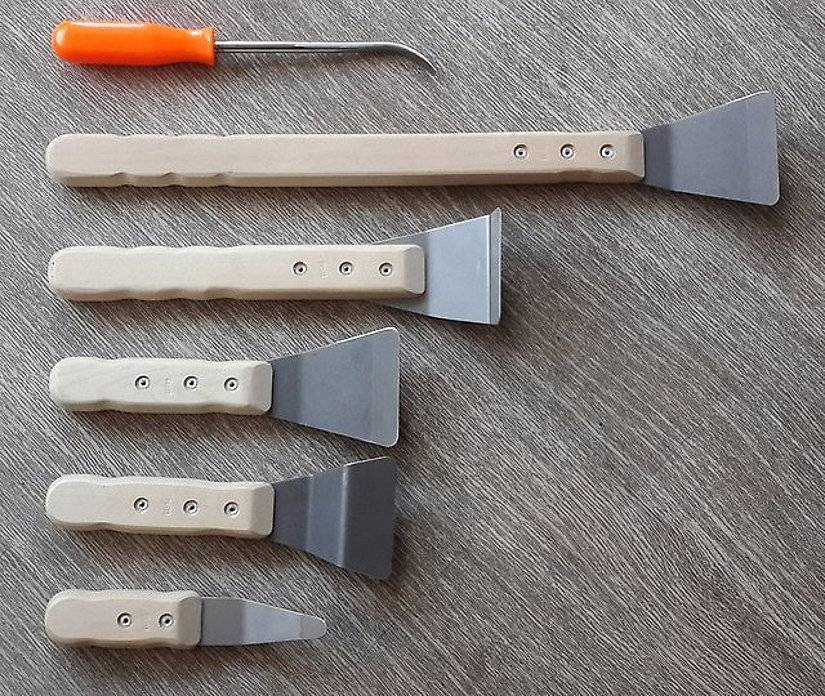 Важно, чтобы у них не было острых краев, а рабочая часть обладала хорошей жесткостью. При профессиональной работе нередко используются специальные электрошпатели, которые серьезно сокращают трудозатраты и время на монтаж