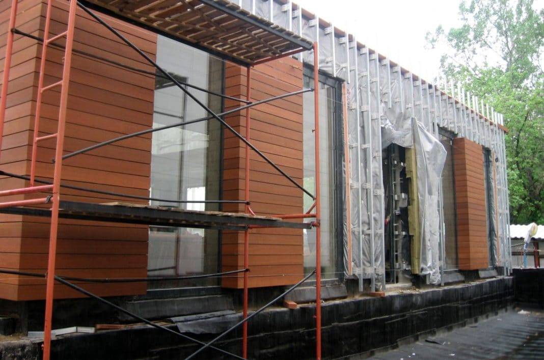 Планкен лучше всего устанавливать на навесном вентилируемом фасаде, чтобы движущиеся потоки воздуха сушили и обшивку, и саму стену