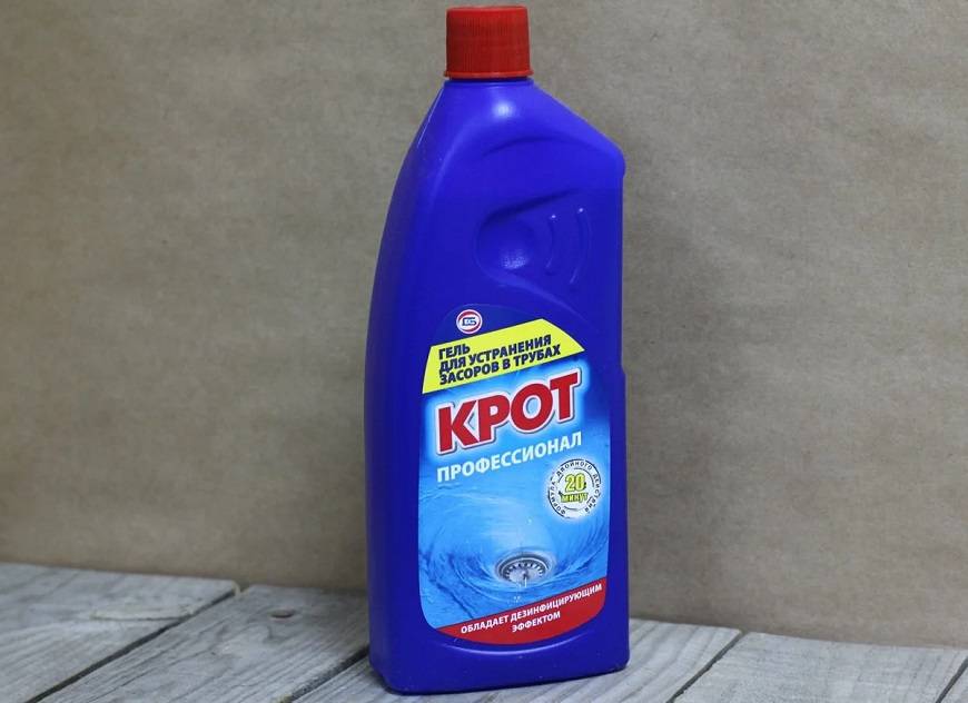 Одним из популярных на российском рынке химических средств является «Крот». Он справляется с засорами различного вида, как-то жир, мыло, бумага, пищевые отходы и волосы.