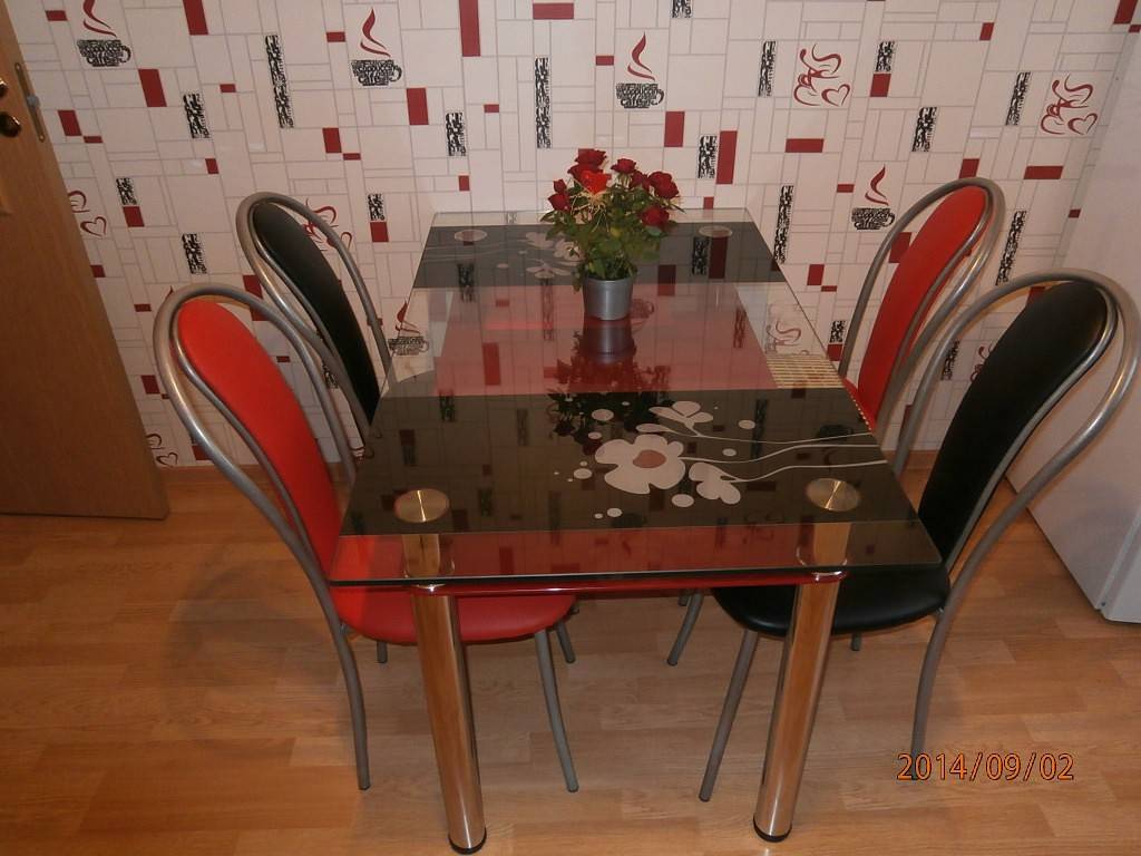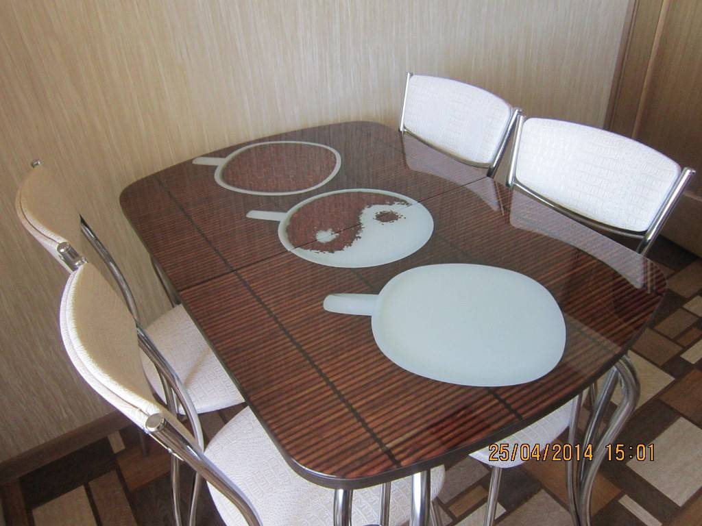 Стеклянный стол на кухне должен быть выполнен из закаленного материала толщиной не менее 10 мм.